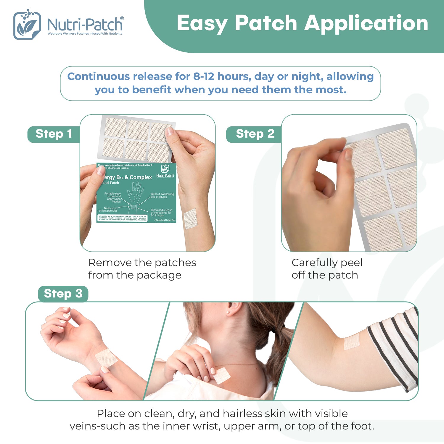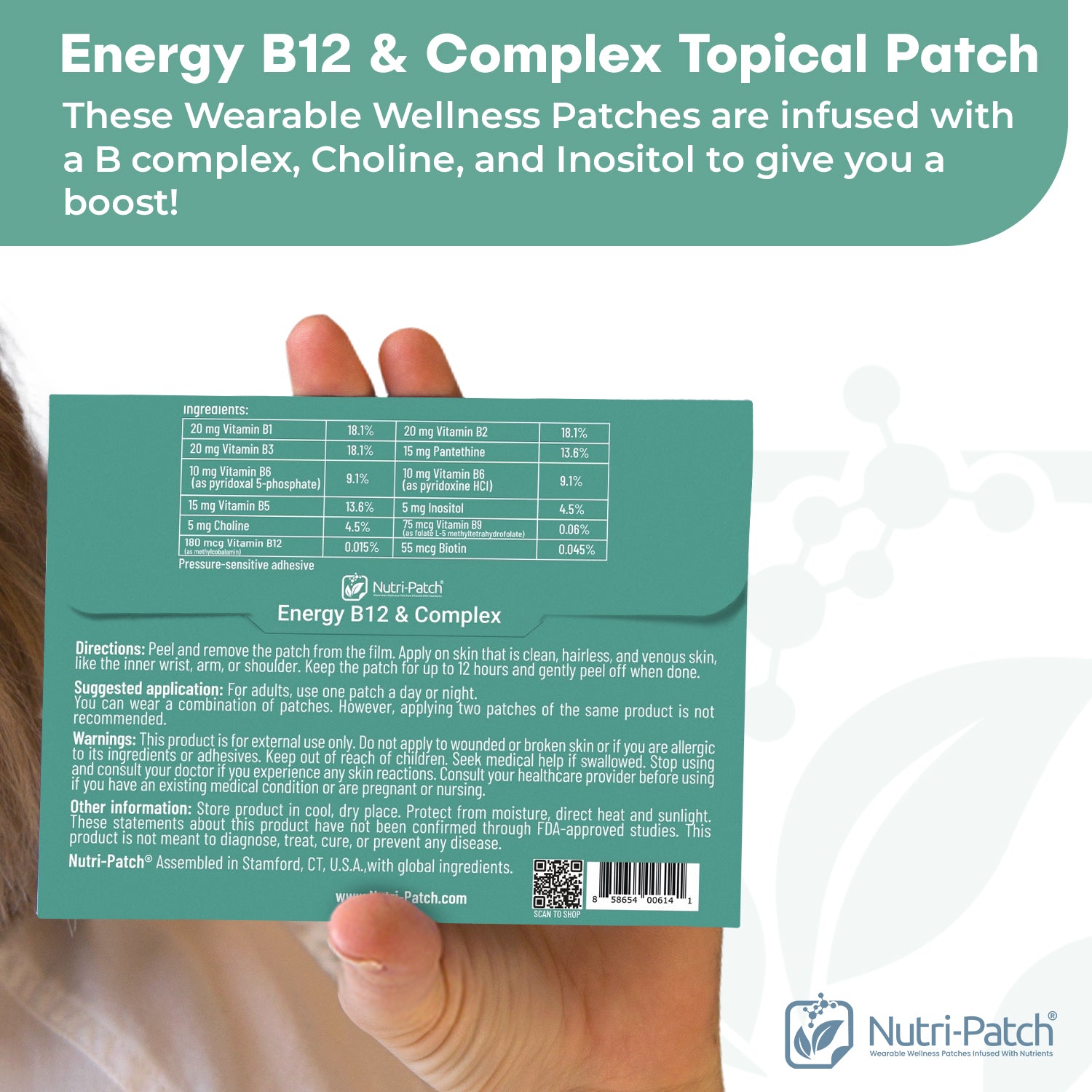 NUTRI-PATCH Energy B12 & B-Complex Nourishing Topical Patches - with Biotin, Choline, Inositol (30 Count)