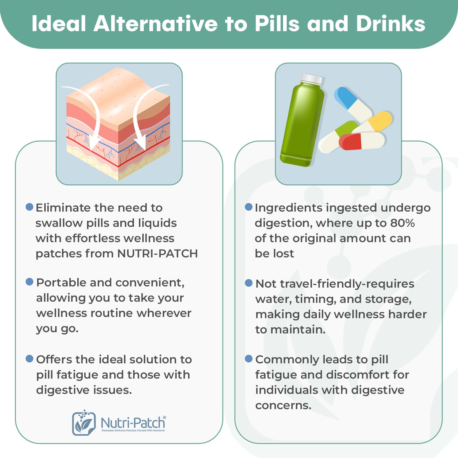 Easily incorporate them into your daily routine and enjoy the benefits of sustained release. NUTRI-PATCH is hypoallergenic, free from artificial dyes and latex for a gentle experience.